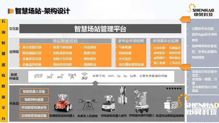申昊科技一直致力于設備檢測及故障診斷,為工業設備安全運行及智能化運維提供綜合解決方案。申昊科技研發的防爆型輪式巡檢機器人以及無人機巡檢系統在油氣行業進行了一系列的創新和探索,不僅提高了生產效率、而且提升了作業安全系數,為客戶無人或少人值守和智能化管理提供有效的檢測、監測手段。